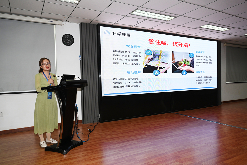 本次活动通大附院特殊选派多位权威专家现场授课、开展义诊。。。。。南通大学隶属医院党委委员、副院长鲁菊英详细先容了通大附院医疗资源优势及特色康健效劳。。。。。作为全市医疗领域标杆,,,,,,,通大附院为立异区及周边住民提供了越发高效、便捷的医疗效劳包管。。。。。南通大学隶属医院康健与疾病治理中心的炊娟霞副主任医师带来了《关注肥胖症,,,,,,,为康健 “减负”》的专题讲座。。。。。深入剖析了肥胖症的形成缘故原由、对身体康健的危害,,,,,,,以及怎样通过科学的饮食和生涯方法举行预防和改善。。。。。她用通俗易懂的语言和生动形象的案例,,,,,,,让员工们深刻熟悉到肥胖症对康健的潜在威胁,,,,,,,同时也为各人提供了适用的康健治理建议。。。。。?